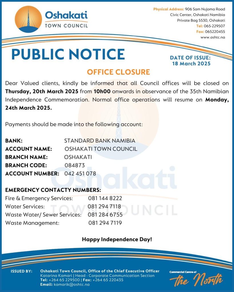 Closure of Oshakati Town Council Offices